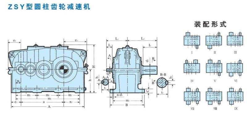 ZSY硬齒面減速機的安裝尺寸: